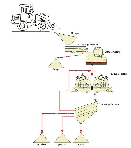 首先,石料顎式破碎機進行初步破碎;然后,產(chǎn)成的粗料由膠帶輸送機輸送至圓錐破碎機進行進一步破碎,細碎后的石料進振動篩篩分出兩種石子,滿足制砂機進料粒度的石子進制砂機制砂,另一部分料返回再進細破。進制砂機的石子一部分制成砂,經(jīng)洗砂機清洗后制成成品砂,另一部分進制砂機再次破碎,最終產(chǎn)出符合要求的各種砂料。
